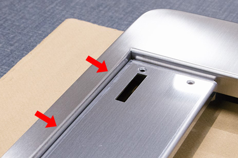 「FLW-1500MT」で溶接した外観品質が求められるカバーの角部(矢印部)