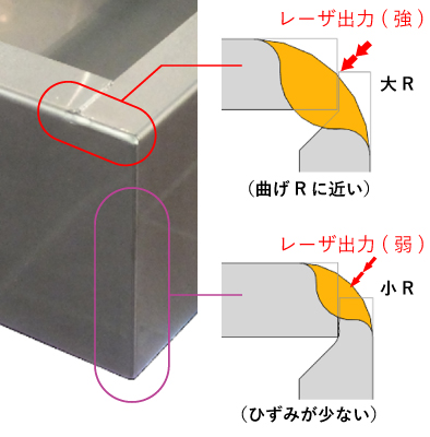 ファイバーレーザでRビード溶接するとR仕上げ作業の削減が可能です。