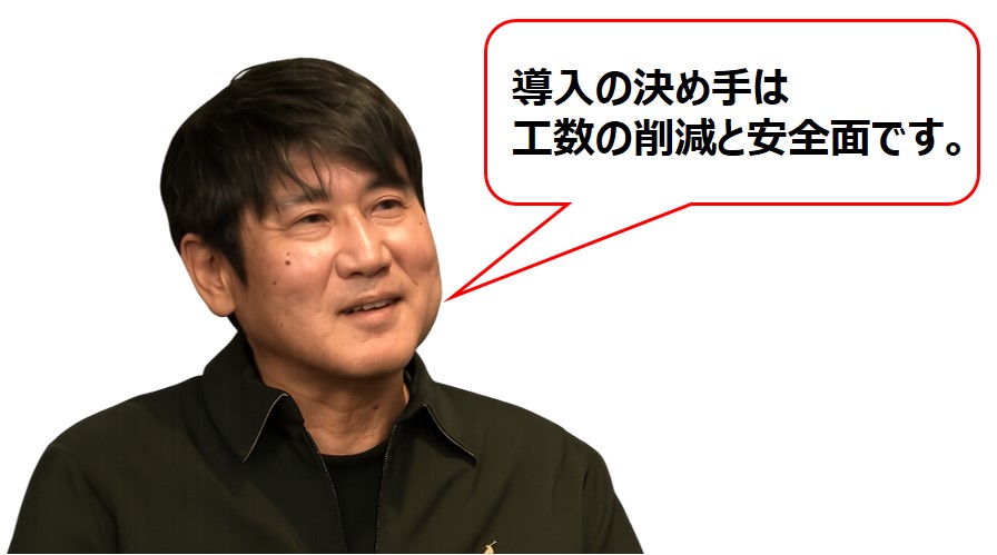 PC上のクリック操作だけで完結するため、現場での長時間の立ち作業や重い治具の組み換えといった身体的負担からも解放されます。