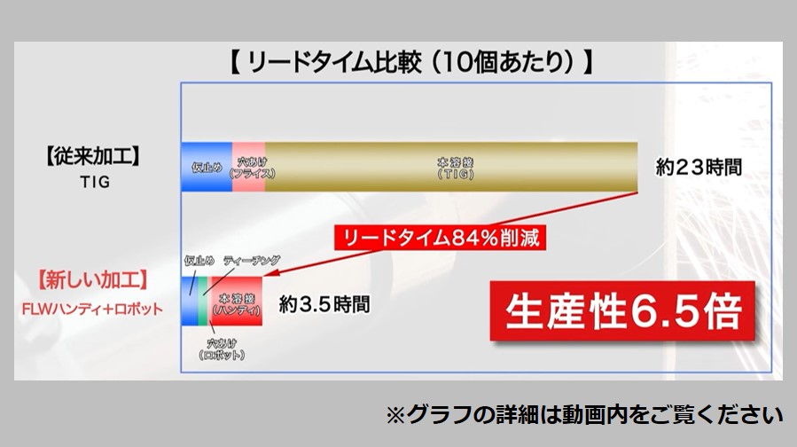 手作業で叩いて起こしていたフランジをFLW-3000Leでロボット溶接に工法転換。簡易切断ノズルでレーザ切断も行い、生産性を大きく向上させたと同時に作業負担も大きく削減しています。