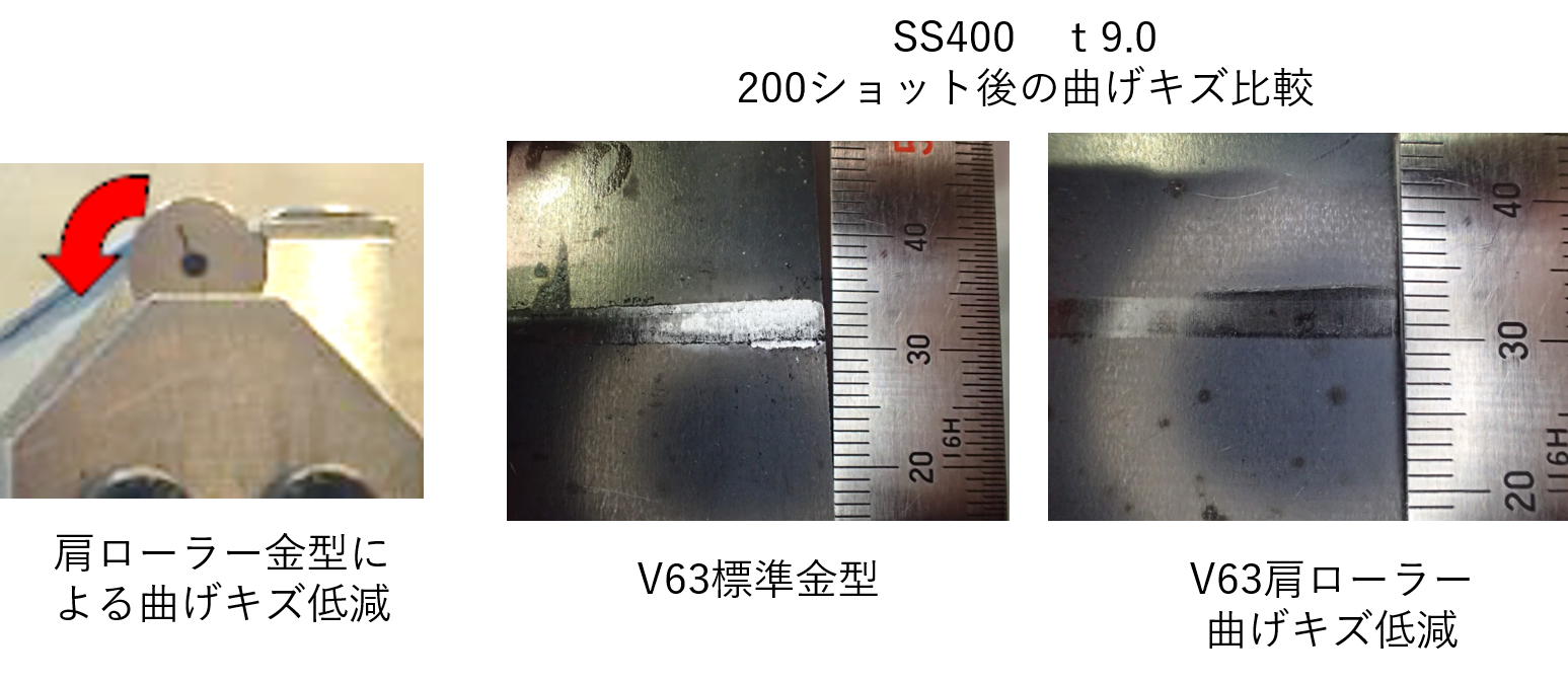 厚板加工はダイ肩負荷によって、 ・曲げキズ ・寸法のばらつき ・ダイ肩摩耗